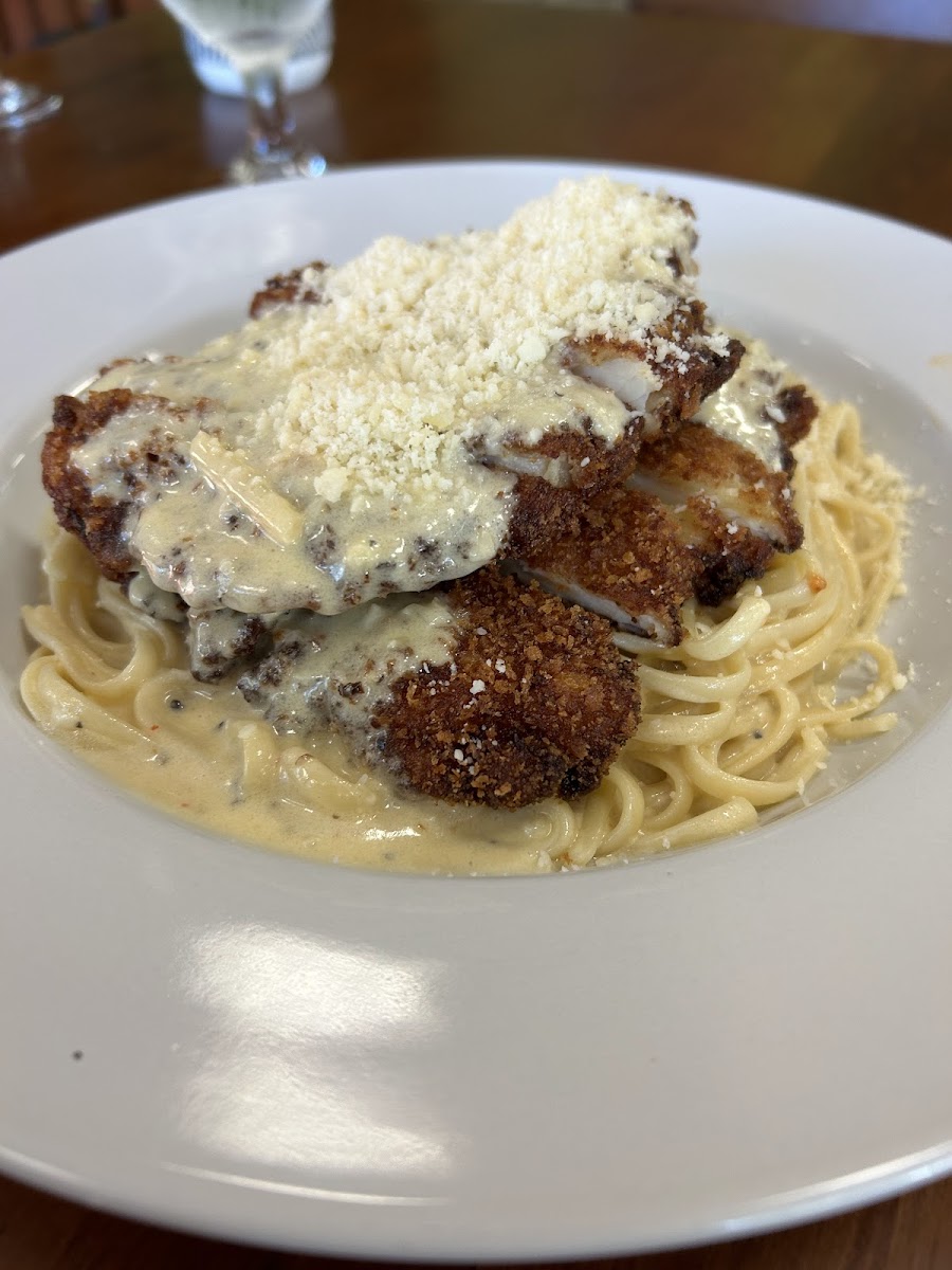 One of the standout dishes on the menu is the flavorful Salmon, expertly prepared to melt in your mouth with every bite. If you're craving something with a bit more zest, the Enchiladas deliver a perfect blend of spices and freshness. For those with a hearty appetite, the Bacon Wrapped Meatloaf is a must-try - it’s rich, savory, and just the right balance of crispy and tender. And if you're in the mood for something crispy yet comforting, don't miss out on the Fried Chicken with Linguine Alfredo. The creamy Alfredo sauce complements the golden, crispy fried chicken, creating a satisfying dish that's both indulgent and filling.